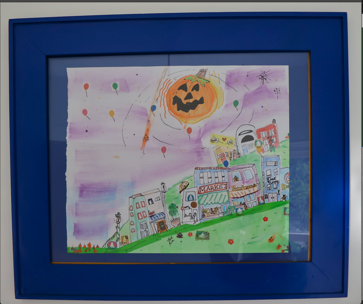 21 in x 25 in (including frame)Acrylic, ink, watercolor, stickers on paper$305 City Life Make Inquiry