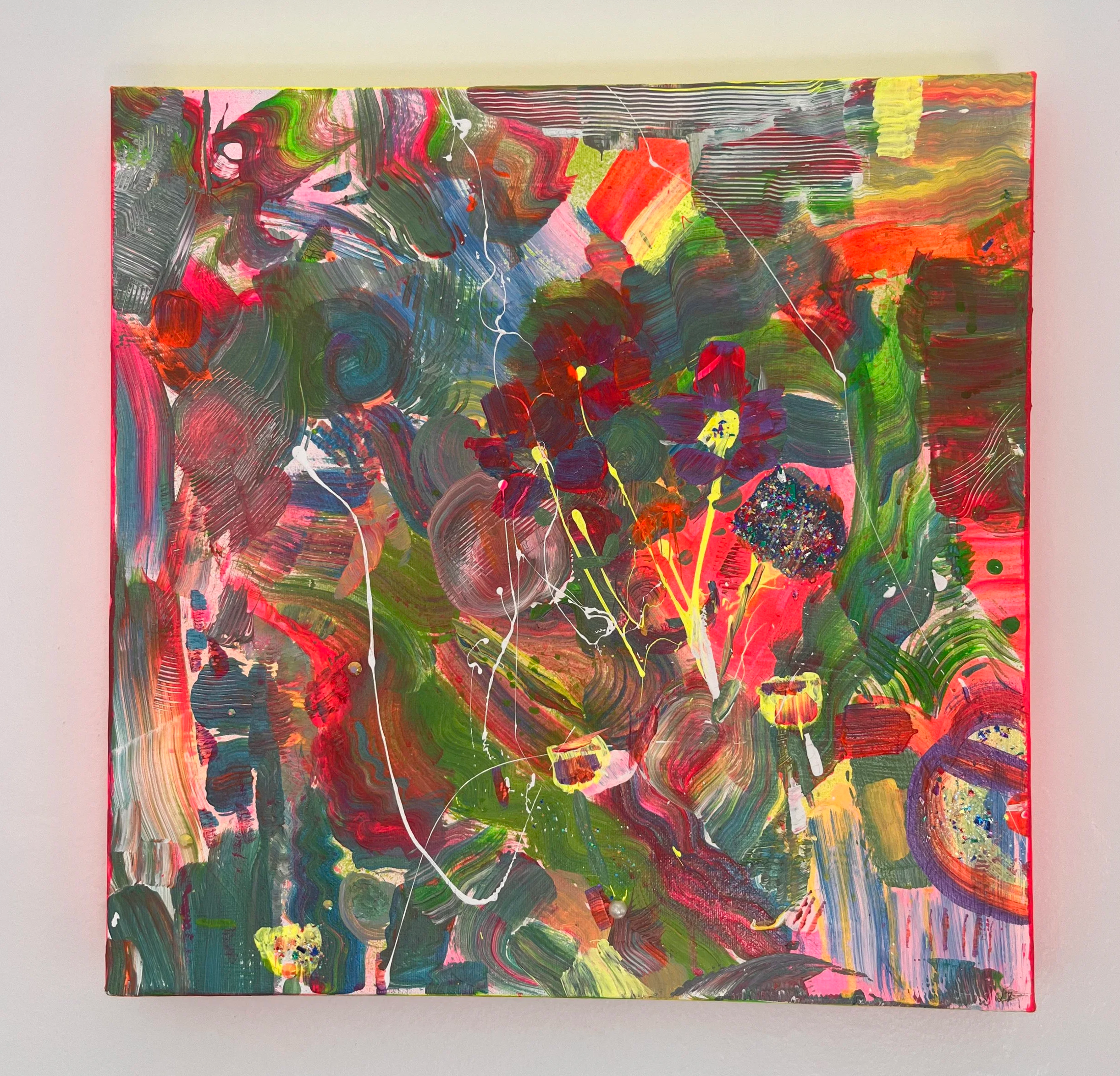 Material: acrylic, neon, foil, glitter and plastic on canvas